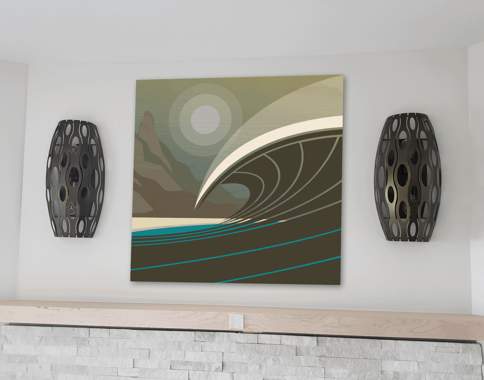 A custom commissioned ocean wave sculpture can be built at almost any custom size as well as any custom color scheme. Shaun is happy to work with you and build your desired wood wall sculptures by providing renderings of what the piece will look like before the build. Feel free to reach out by phone or email.