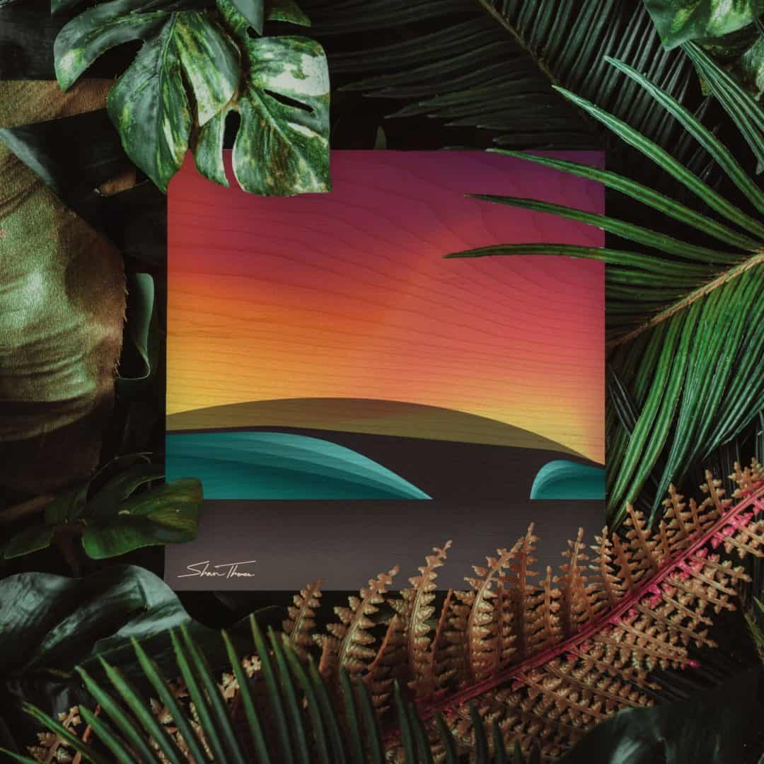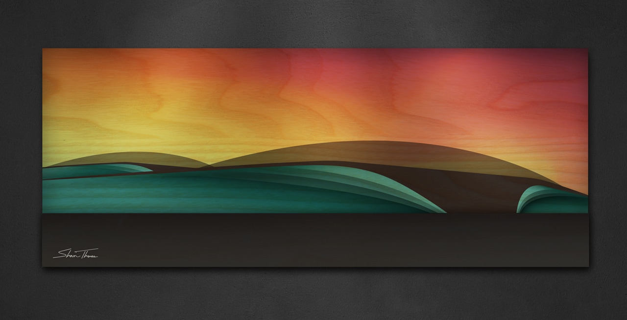 A vibrant wave breaking along the horizon. Inspired by a beach-break in southern California during a solid swell.- Artist signature on the front
