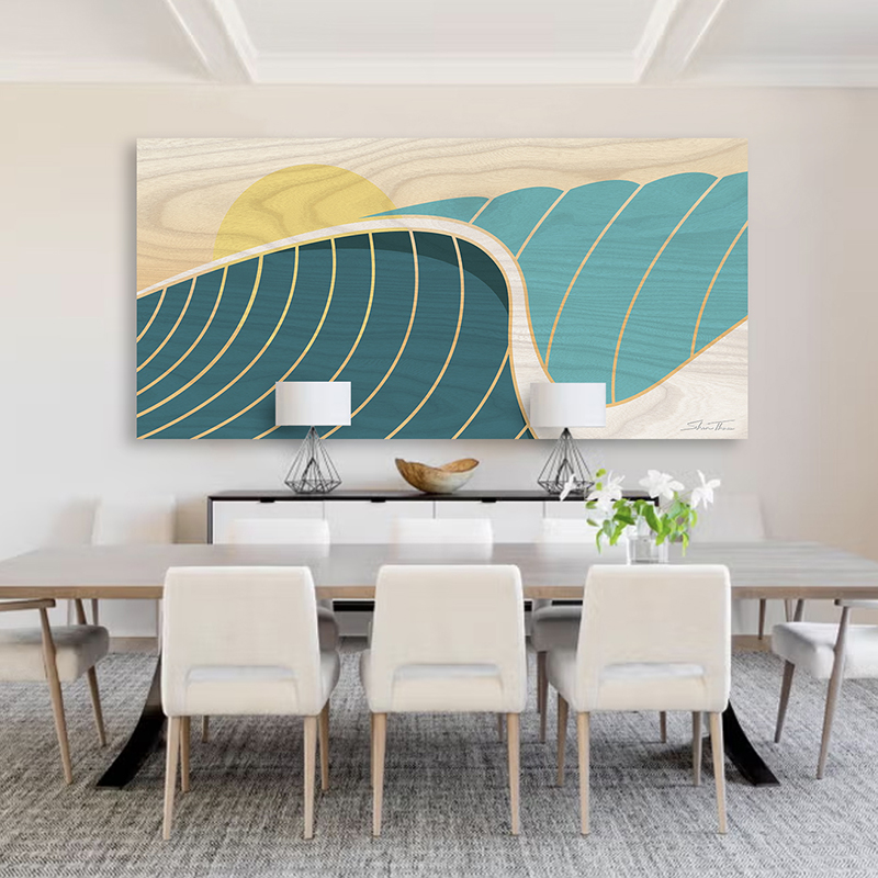 - Modern and sleek look and feel with bright and vivid colors. Showroom high-gloss finish on thin metal. Option to upgrade and hang outside (select Metal Print Outdoor). Comes ready to hang. A unique wood grain pattern is added to the design. Will look just like the image you see online.